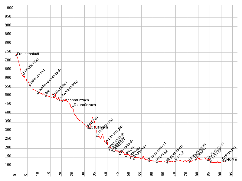 Ort | km | Hoch | Runter |